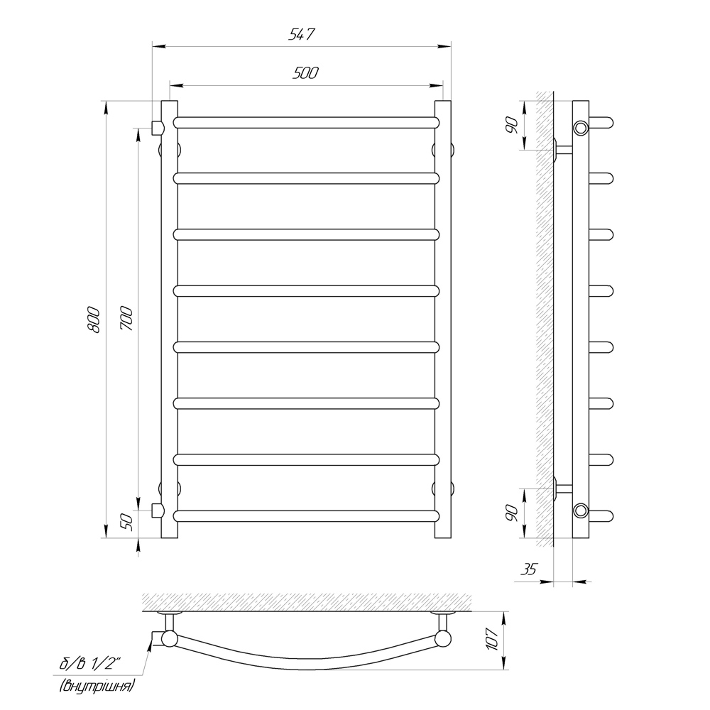Різьба: 1/2 " внутрішня (бокове підключення)