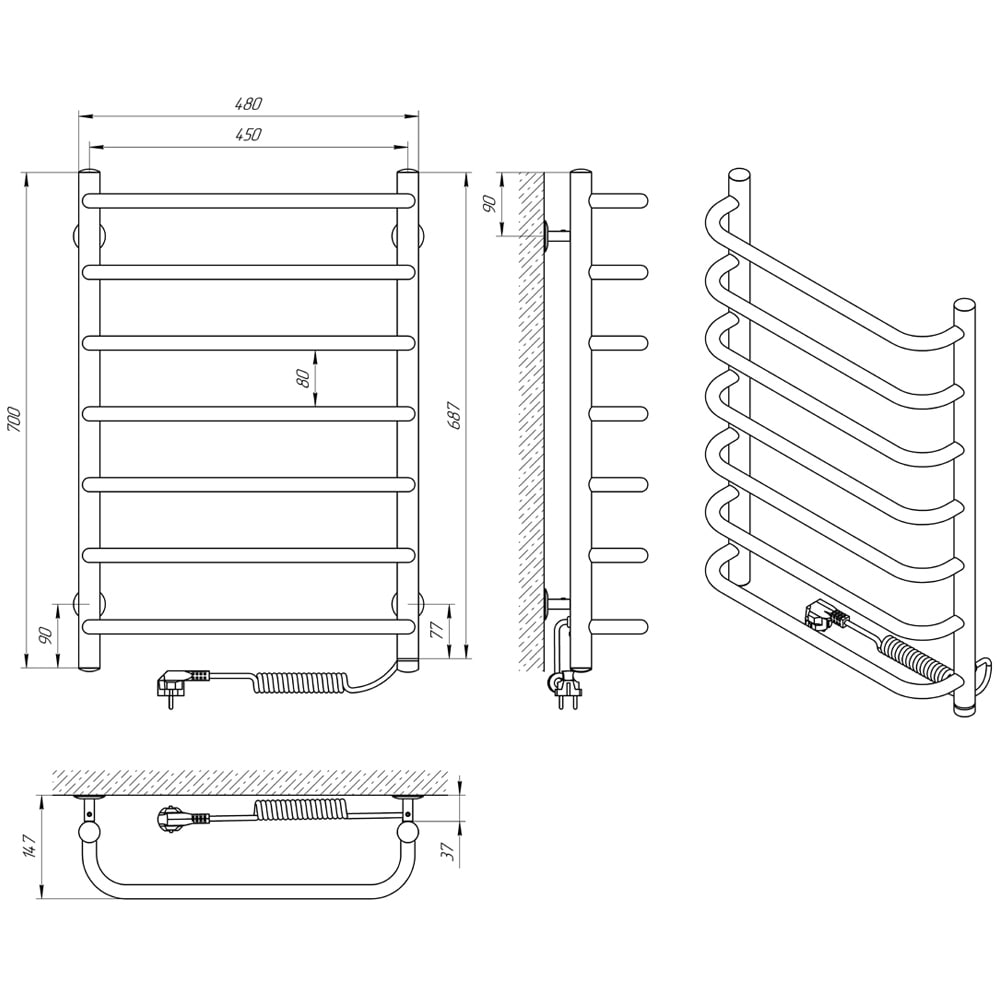 Електрична рушникосушарка Laris Стандарт П7 450 х 700 Е (підкл. справа) S3
